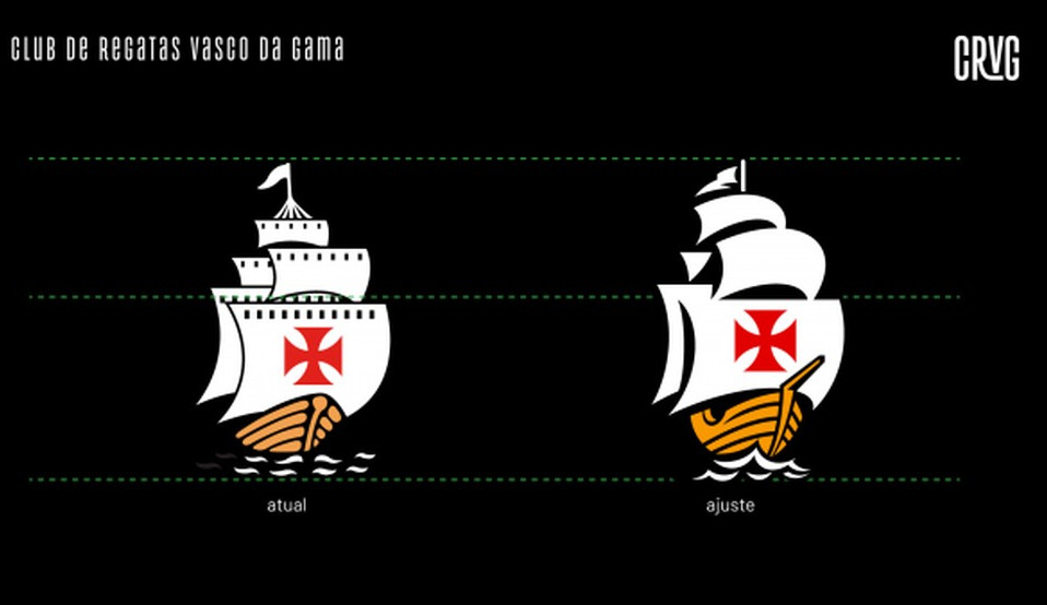 “O formato inconfundível do escudo apresentava espessura irregular, agora corrigida. Os novos monogramas CR e VG foram inspirados na famosa estátua de Vasco da Gama, presente na entrada social de São Januário e trazem alinhamento do padrão tipográfico. A faixa, tão característica, agora tem um ângulo padrão de 45º e a Cruz que carregamos no peito, que dispensa apresentações, segue em seu lugar de destaque, com todo o peso e grandiosidade que merece. A Caravela, ícone central do escudo, apresentava estilos de traços diferentes e detalhes que dificultavam aplicações, a nova e imponente Caravela agora navega para frente sobre fortes ondas e com velas estufadas, representando bravura e dinamismo”, explicou o clube no vídeo postado nas redes sociais oficiais.