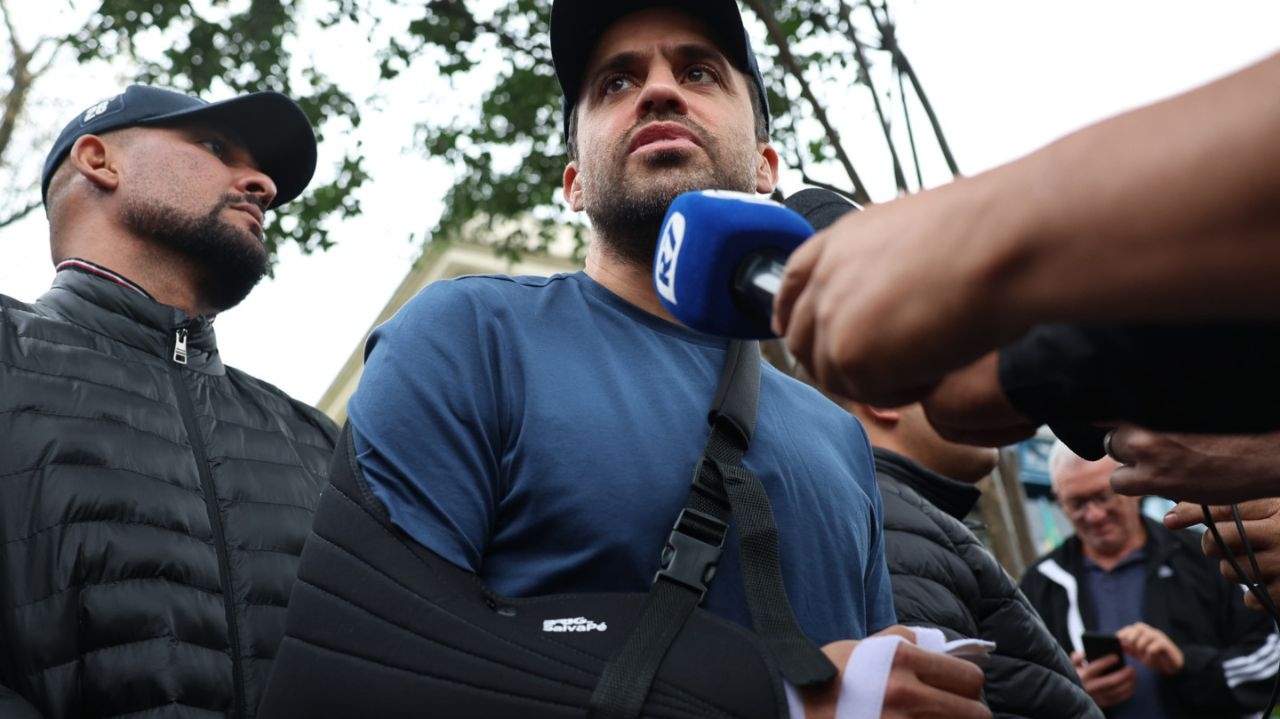 Foto destaque: Pablo Marçal falando à imprensa na saída do IML Central em São Paulo (Reprodução/Zanone Fraissat/Folhapress/Instagram/@folhadespaulo)