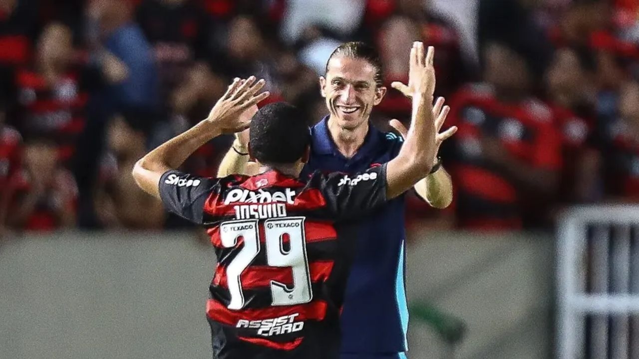 Foto destaque: Filipe Luís celebra primeiro gol de Joshua no profissional do Flamengo (Foto: Reprodução/Instagram/@Flamengo)