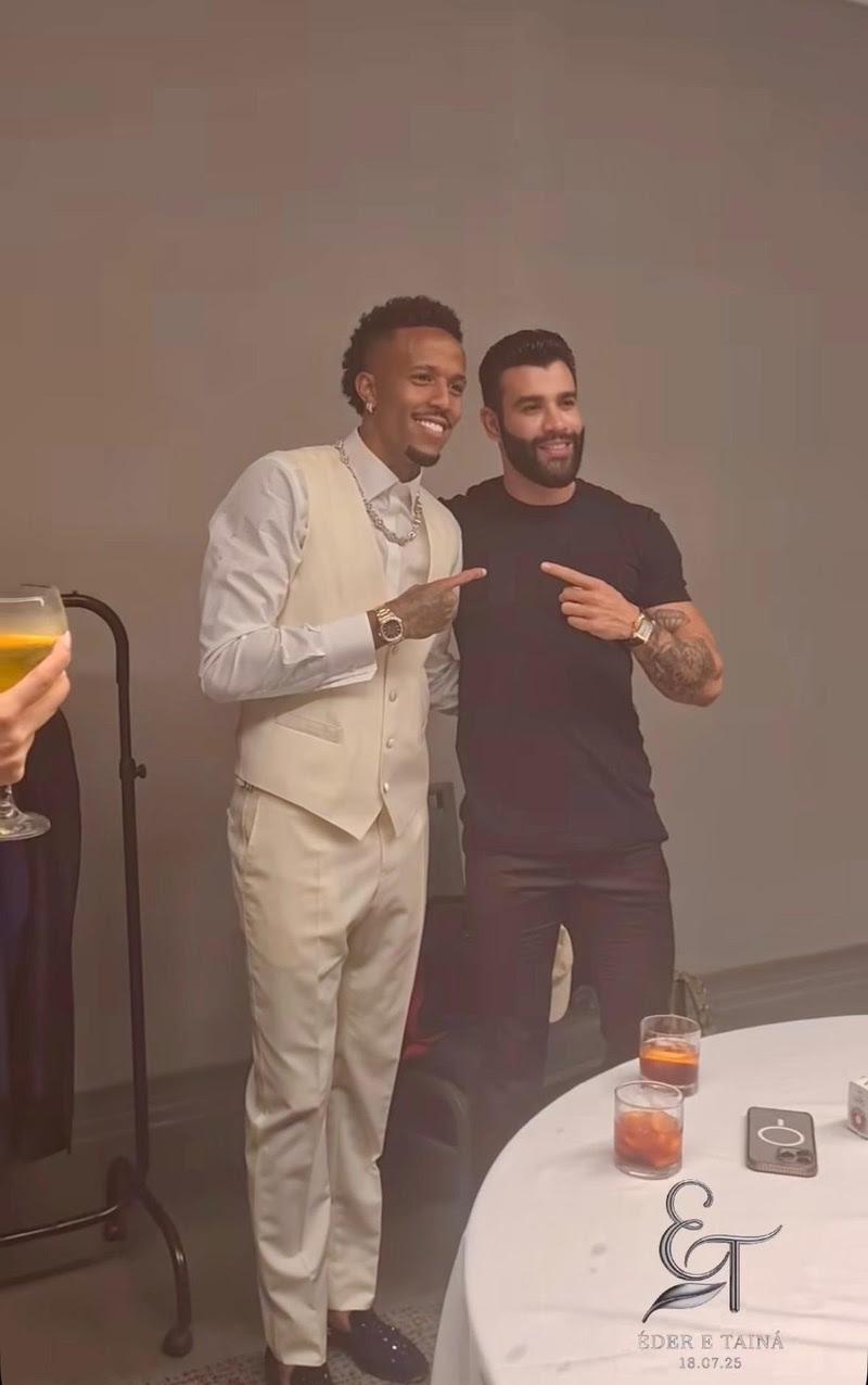 Entre os presentes estavam companheiros de Militão no clube espanhol, como Vinicius Jr. e Rodrygo Goes, além do francês Eduardo Camavinga. O evento também contou com a presença de nomes do entretenimento como Mc Hariel, a DJ Bárbara Labres, Aron Pipet, Gabriela Versiani, entre outros influenciadores e artistas que prestigiaram o casal.