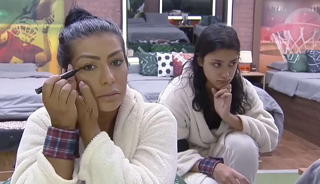 “Já pensou se a gente voltar, nós duas? E o pior é que a primeira que voltar não vai ter ninguém para comemorar com ela”, brincou Bia, relembrando que as peoas são as únicas integrantes do grupo A ainda no jogo. O time sofreu baixas inesperadas com as recentes desistências de Deolane Bezerra e Pétala Barreiros.