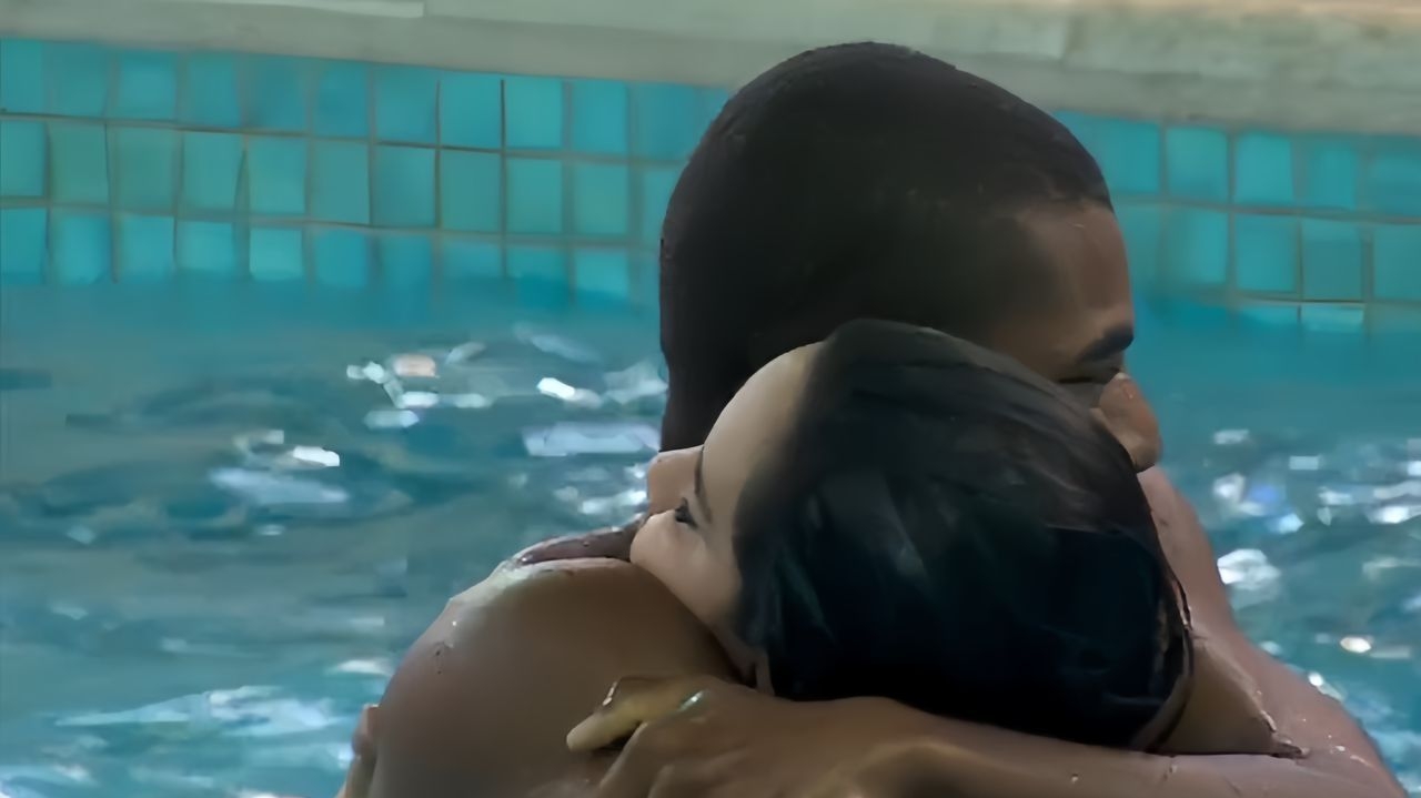 Isabelle e Davi comemorando juntos na piscina Foto: reprodução/Globoplay)