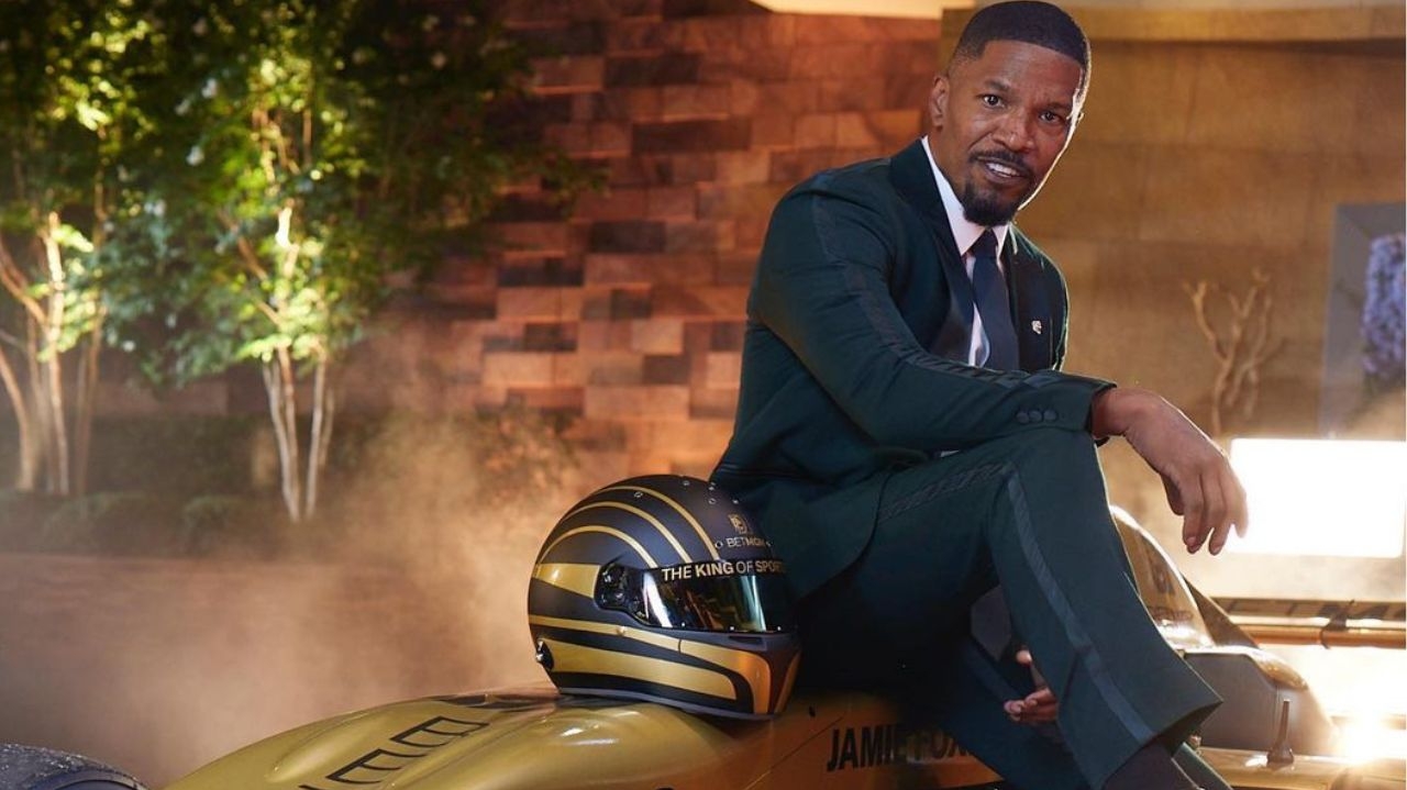 Foto destaque: Jamie Foxx posa com um carro de corrida em campanha da BetMGM (Reprodução/Instagram/@iamjamiefoxx)