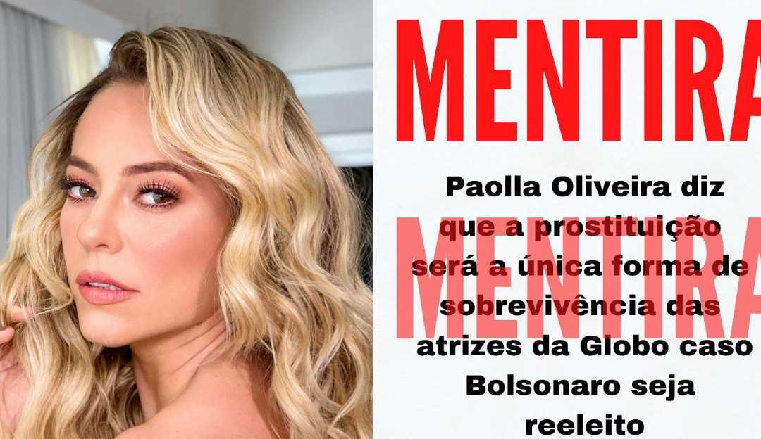 A atriz Paolla Oliveira fez uso do seu Instagram para rebater uma fake news que compartilharam num site como se fossem suas palavras, segundo o site ela teria dito que “a prostituição será a única forma de sobrevivência das atrizes da Globo caso Bolsonaro seja reeleito”. Paolla publicou um longo texto explicando que esse site – Grupo Notícias Online – estava compartilhando fake news, e que ela jamais desrespeitaria mulheres que se prostituem por qualquer motivo.