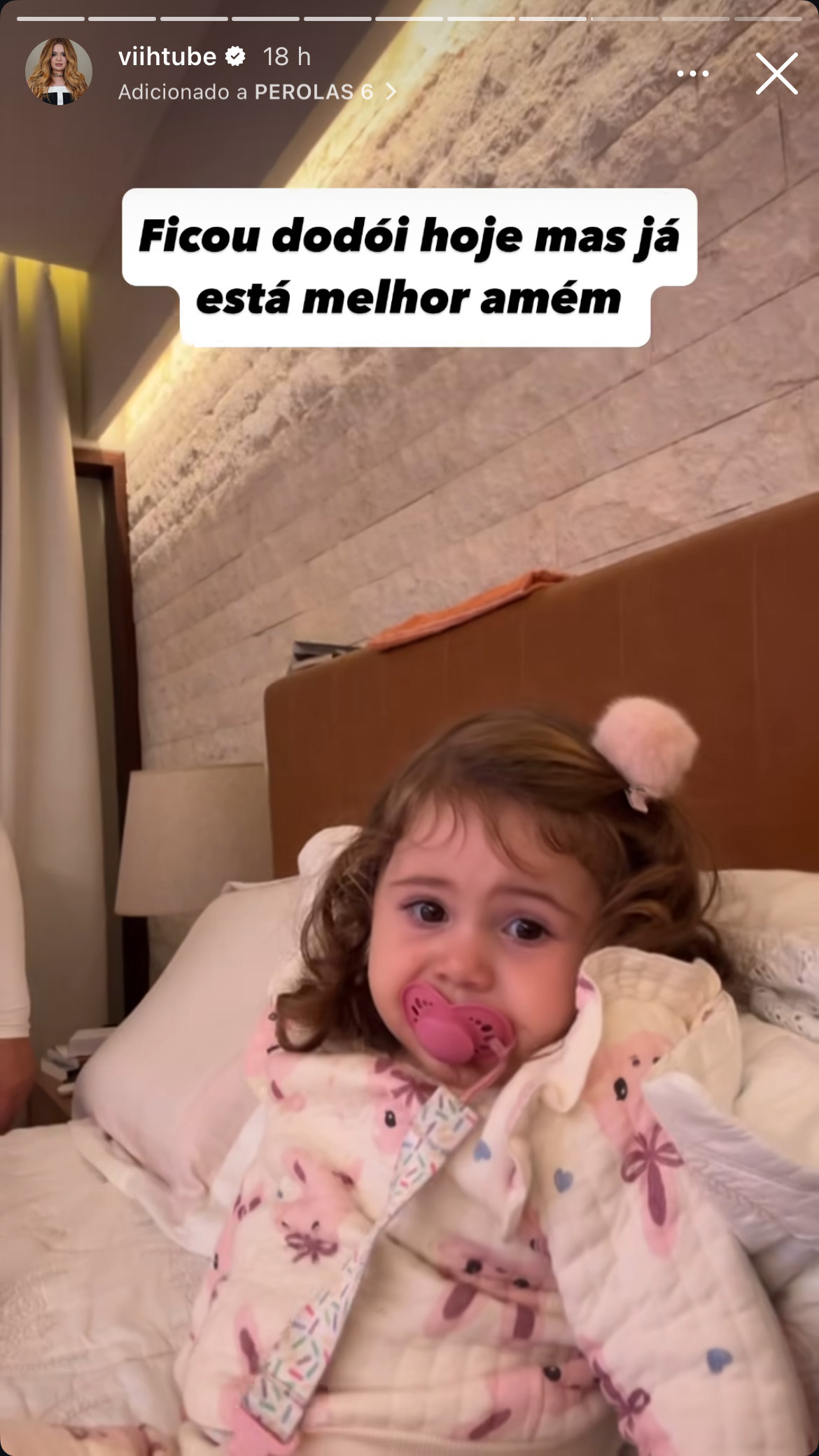 Diante disso, Eliezer assumiu os cuidados com a menina, enquanto Viih retomava aos poucos sua rotina profissional. Segundo o casal, Lua já começou a reagir positivamente e apresentou melhora significativa nesta segunda-feira (23), voltando a se alimentar com mais disposição e demonstrando estar mais animada.