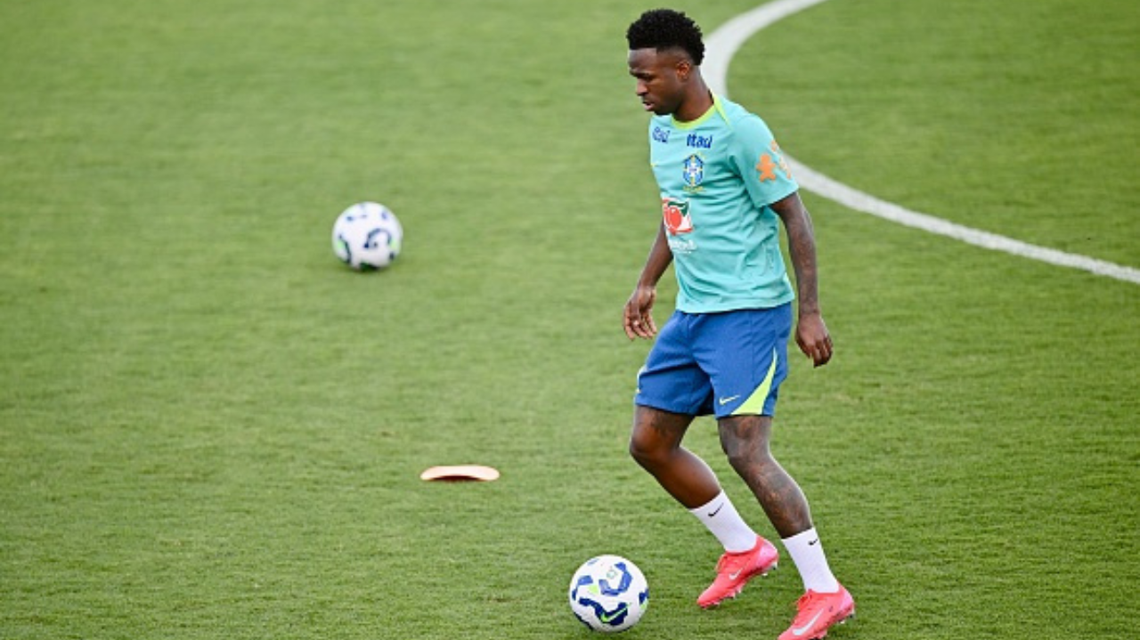Foto Destaque: Brasil de Vini Jr. enfrenta a Colômbia nesta quinta-feira (20) em Brasília (Reprodução/EVARISTO SA/AFP/Getty Images Embed)