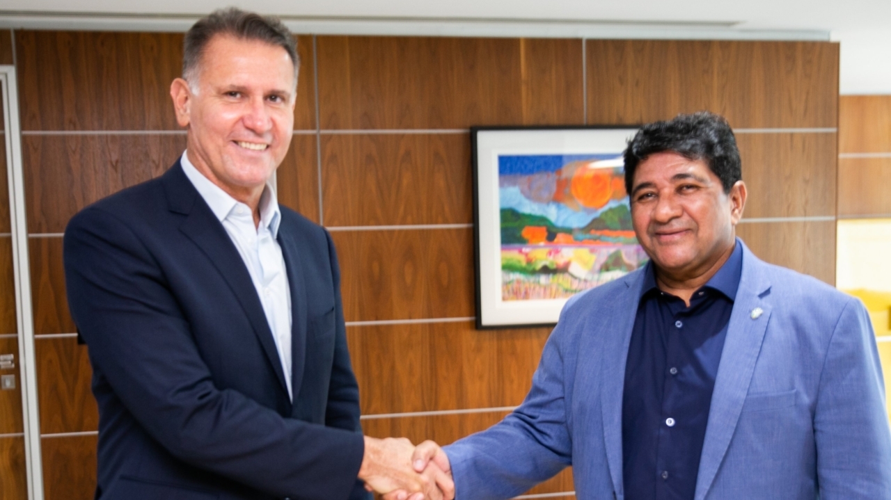 Foto destaque: Wilson Seneme e Ednaldo Rodrigues apertando as mãos na apresentação como novo dirigente do cargo em 2022 (Reprodução/@CBF_Futebol/X)