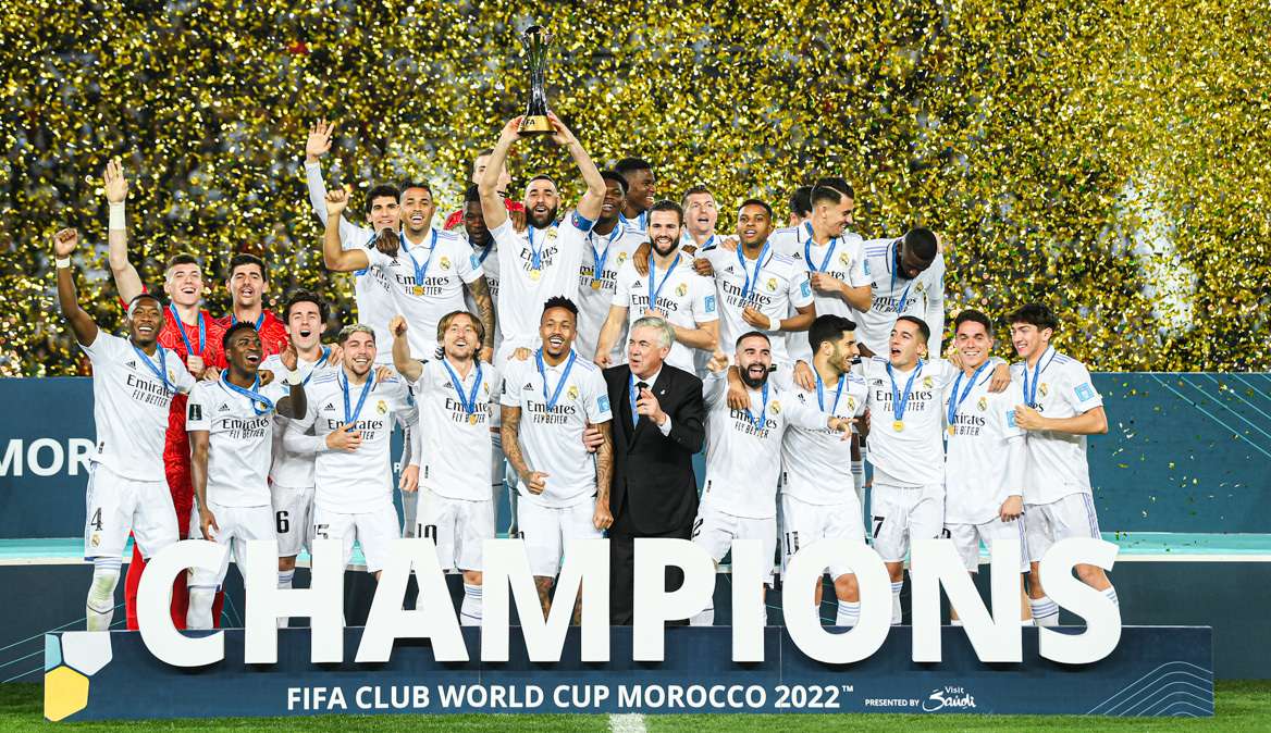 Foto destaque: Elenco do Real Madrid comemorando o título do Mundial de Clubes. Reprodução/ Real Madrid