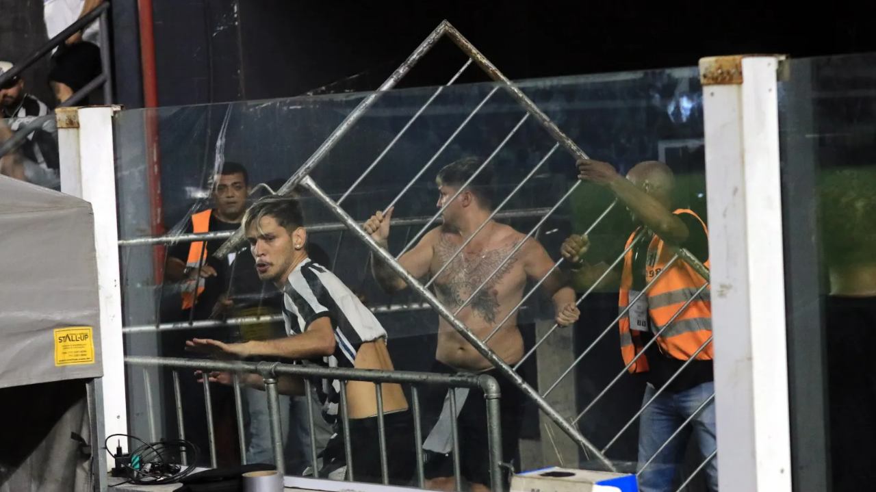 Foto destaque: confrontos e violência após a partida entre Santos X Fortaleza (Reprodução/ Alexsander Ferraz/ AT)