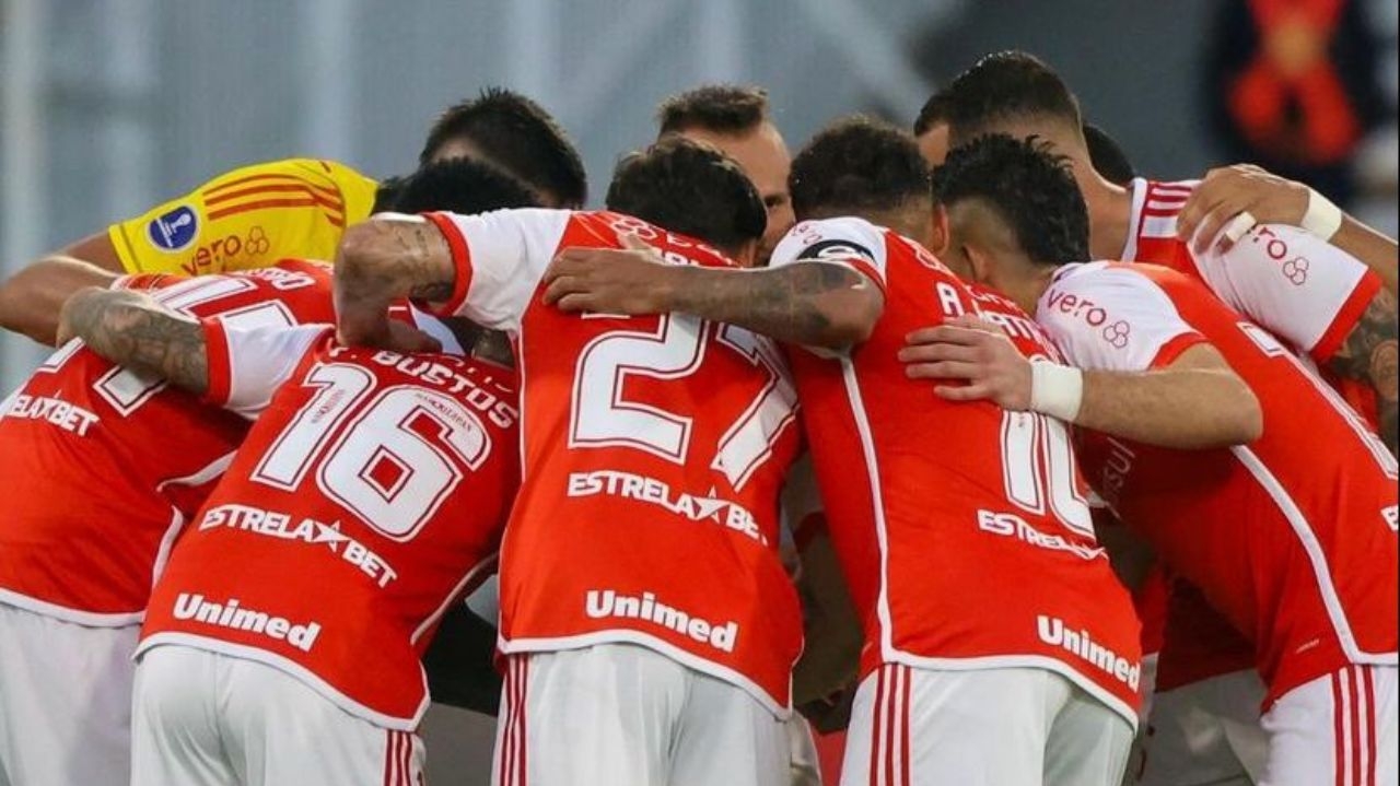 Foto Destaque: time do Internacional reunido para apoio pré-jogo (Reprdução/Instagram/@scinternacional/@r_duarte75)