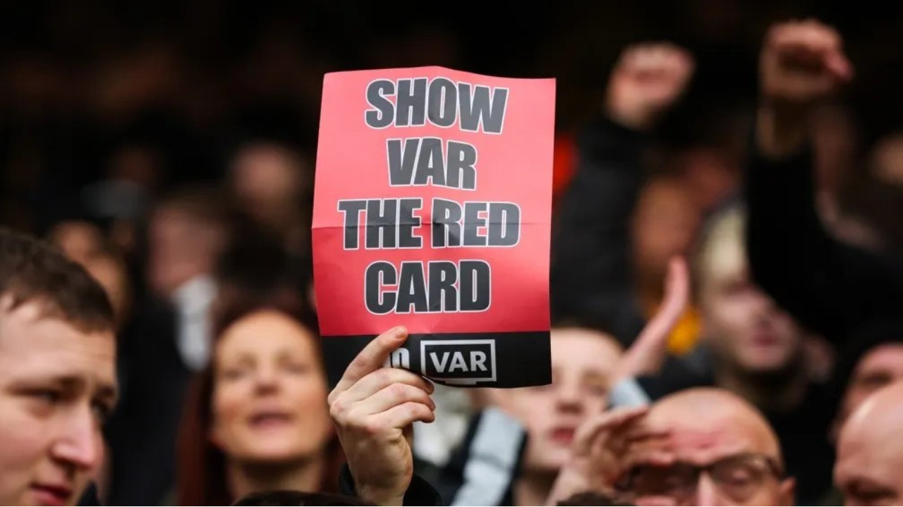 Foto Destaque: Torcedores ingleses também se manifestaram contra o VAR (Foto:Reprodução/MarcAtkins/GettyImages/Embed)