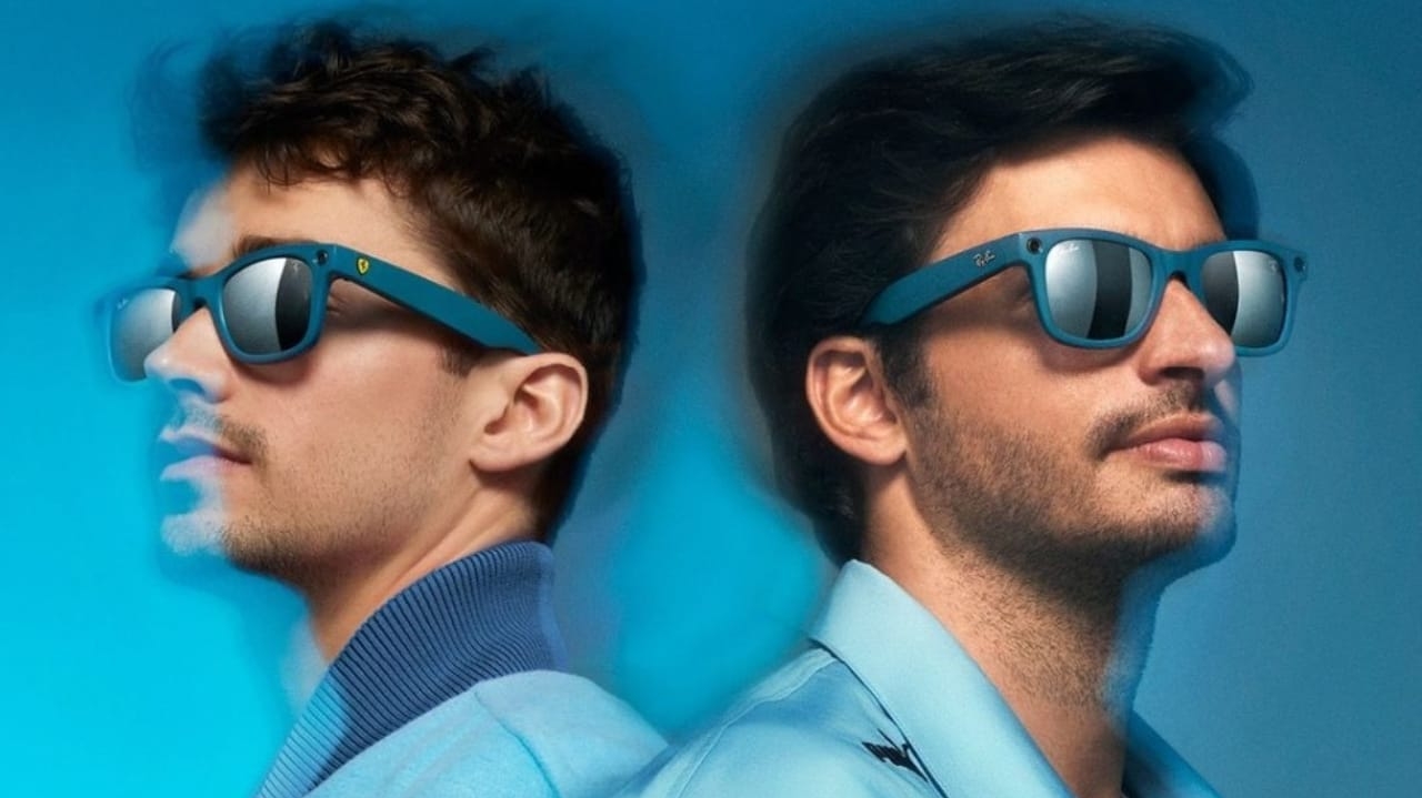 Foto destaque: Carlos Sainz e Leclerc usando óculos com os tons de azul que serão utilizados na próxima etapa da F1 (Reprodução/Instagram/@scuderiaferrari)