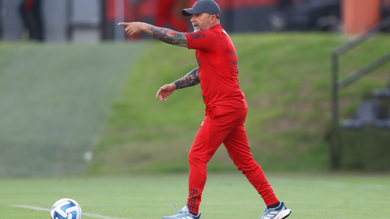 Foto Destaque: Técnico Jorge Sampaoli em treinamento do Flamengo. Reprodução/Gilvan de Souza/Flamengo