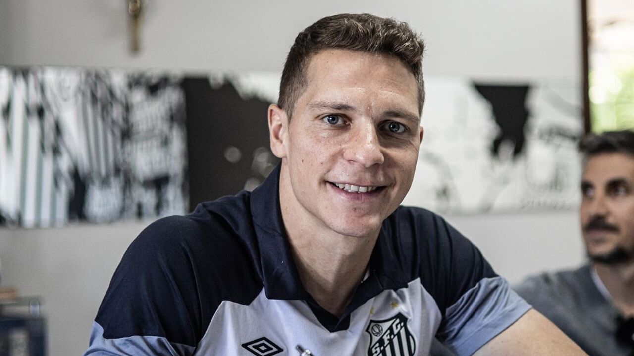 O jogador de 33 anos assinou contrato com o Peixe e chega para disputar posição com o jovem, Marcos Leonardo. O atacante argentino foi anunciado nesta sexta-feira pelo Santos e ficará por duas temporadas. O centroavante atuava no Atlas, do México.