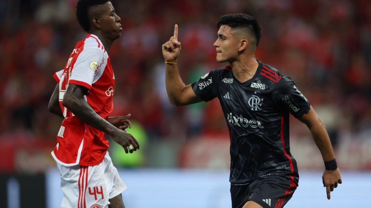 Foto destaque: Alcaraz, do Flamengo, e Vitão, do Inter, em campo (Reprodução/X/@Brasileirao)