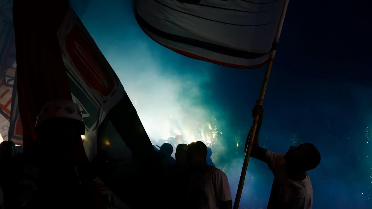 Foto destaque: torcida do São Paulo em meio as fumaças azuis e brancas antes do jogo (reprodução/Instagram/@saopaulofc)