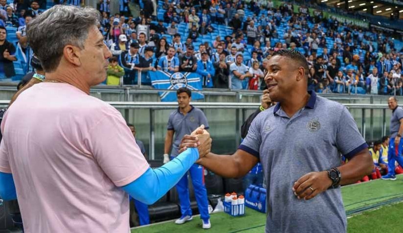 Foto Destaque: Renato Gaúcho (Esquerda) e Roger Machado (Direita). Reprodução/Lucas Uebel/Grêmio