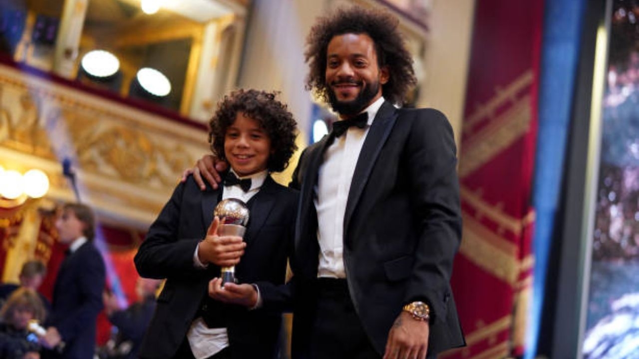 Foto destaque: Marcelo, acompanhado de Enzo, recebe o Prêmio The Best FIFA Football Awards 2019 (Reprodução/Simon Hoffmann/Getty Images Embed)