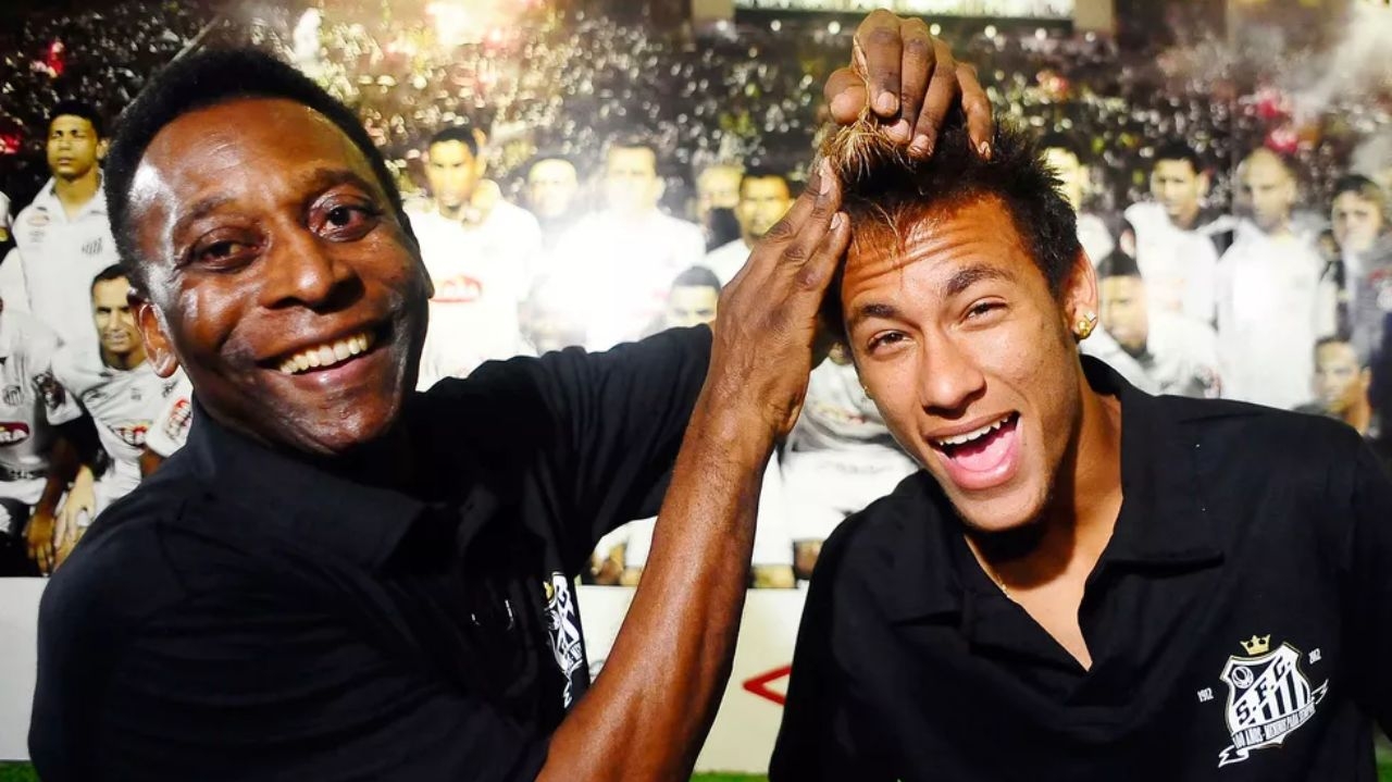 Foto destaque: Neymar e Pelé foram próximos desde a passagem do jogador pelo Santos (Reprodução/Marcos Ribolli/ge)