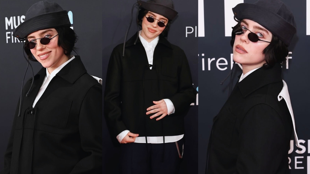 A escolha do visual para a noite não foi por acaso. Billie Eilish, sempre ousada e autêntica, optou por um conjunto que mescla a sofisticação de um clássico preto e branco com o estilo único e irreverente que a torna uma das artistas mais influentes de sua geração. Com calças largas e uma jaqueta de corte reto, ela escolheu um estilo que mistura conforto e elegância, sem abrir mão de sua personalidade. Mas o verdadeiro toque de charme ficou por conta do chapéu de marinheiro que ela usou, fazendo uma referência à sua estética singular e ao mesmo tempo dando um toque de mistério.
