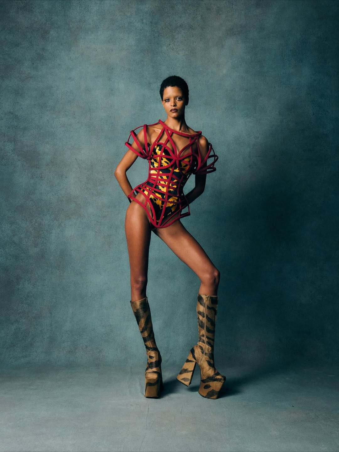 O clímax da noite foi o vestido-gaiola que encerrou o desfile, um manifesto artístico que posiciona Harris Reed como um dos nomes mais performáticos e experimentais da moda contemporânea. Mais do que roupas, The Aviary mostrou como a moda pode ser espetáculo e identidade.