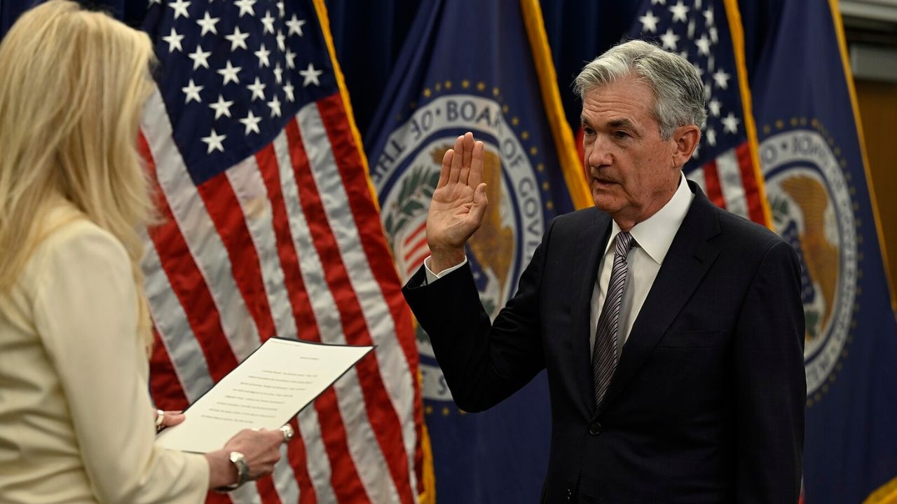 Foto Destaque: Jerome Powell, presidente do FED, fazendo o juramento para seu segundo mandato como presidente (reprodução/ Federal Reserve/ Wikipedia)