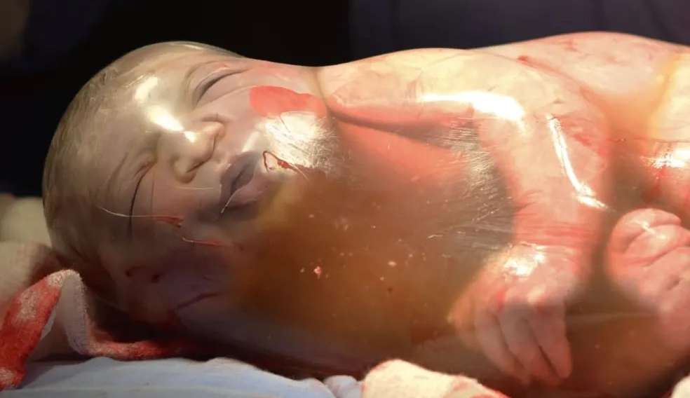 Foto destaque: Maria Lívia ainda no saco amniótico. Reprodução/Sandra Rosa/Divulgação