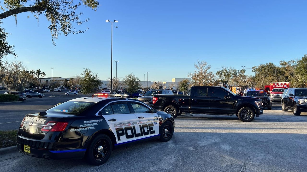 Foto destaque: viaturas foram enviadas para investigar tiroteio no Paddock Mall (Reprodução/Facebook/OcalaPoliceDepartament)