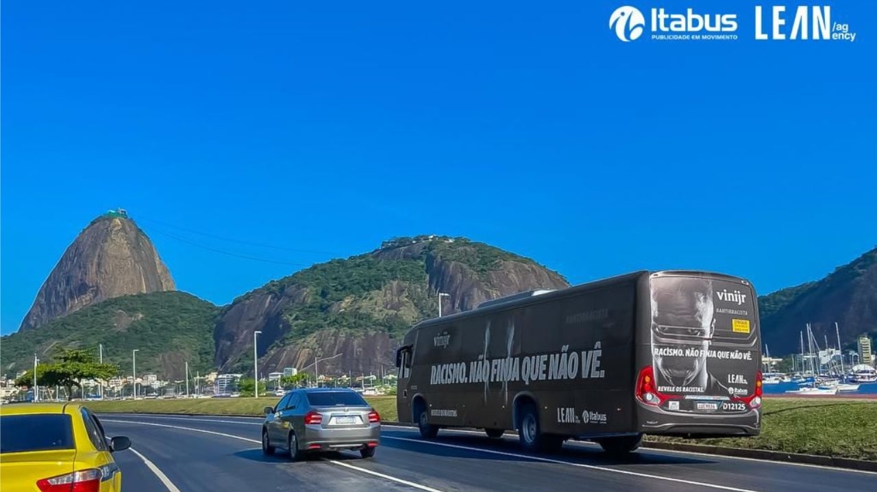 Em apoio à iniciativa antirracismo do jogador do Real Madrid, Vinícius Júnior, a Itabus, empresa de mídia em movimento, em parceria com a agência Lean, lançou uma campanha impactante pelas ruas. Um ônibus envelopado com a mensagem “Racismo. Não Finja que Não Vê” circula pela cidade do Rio de Janeiro, chamando a atenção para a causa ao longo do mês.
