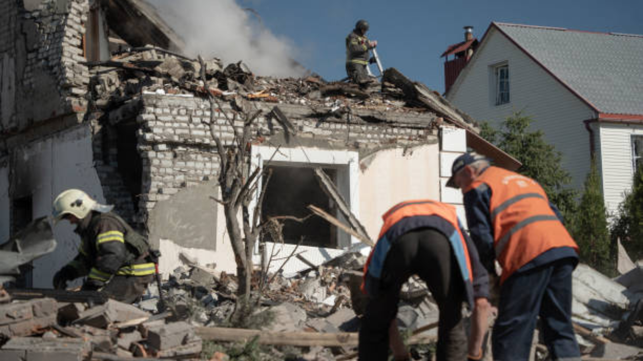 Equipes de salvamento trabalham numa casa em Kharkiv, na Ucrânia (Foto: reprodução/Ukrinform/GettyImages Embed)