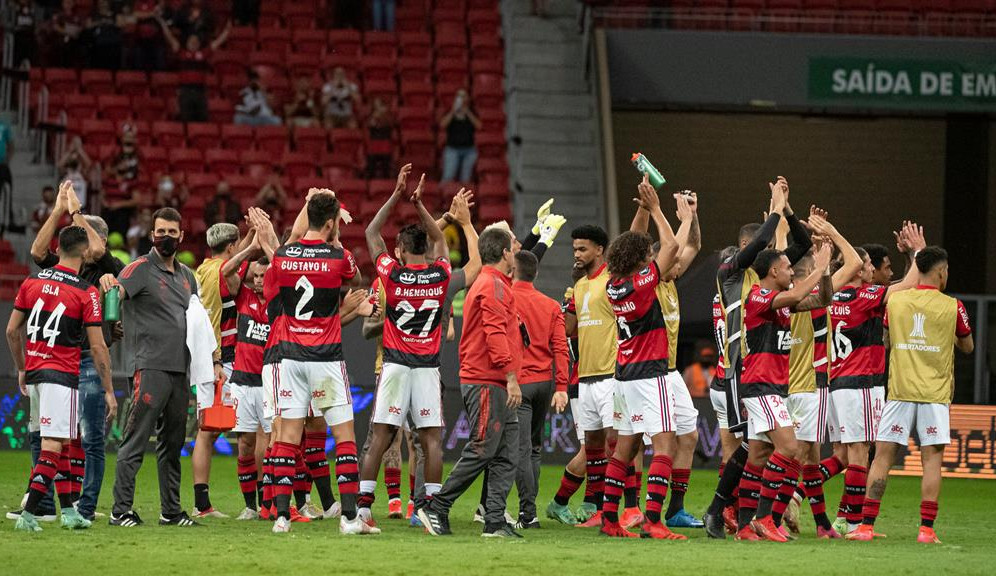 (Foto de Destaque:Jogadores do Flamengo aplaudem torcida presente no Mané Garrincha. Reprodução: Alexandre Vidal)