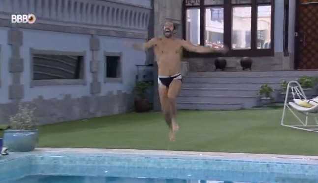 Gil se anima com festa surpresa no lugar da eliminação e pula na piscina: ‘Hoje eu não saio’ (Vídeo: Reprodução/Twitter)