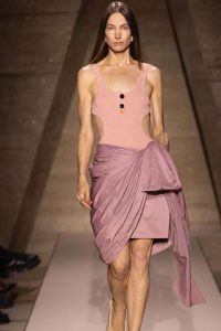 O tom delicado ganhou protagonismo nas passarelas. Inspirado no universo do balé, o rosa claro foi aplicado em vestidos leves, saias esvoaçantes e até em acessórios sofisticados. A estética traduz romantismo sem deixar de lado a sofisticação.