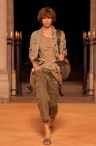 Nas passarelas, o verde-militar dialogou com tecidos de luxo, como seda e couro, quebrando a rigidez do visual. O resultado é um guarda-roupa versátil, que transita do casual ao elegante com a mesma imponência.